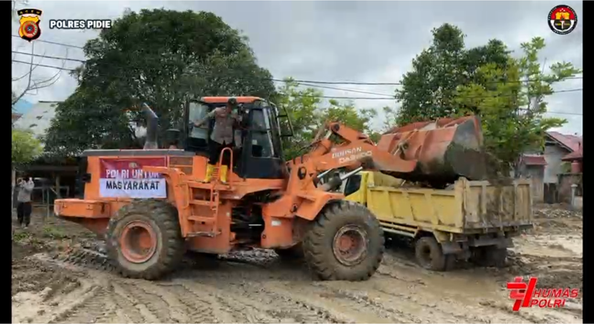 Bantuan dari Kapolri tersebut berupa dua unit alat berat, yakni satu unit wheel loader dan satu unit excavator, serta dua unit mobil dump truck. Alat-alat tersebut dikerahkan oleh Polres Pidie melalui Posko Tanggap Darurat Bencana untuk membersihkan fasilitas umum dan rumah warga serta gundukan tanah dan lumpur yang menutupi badan Jalan di Gampong Jojo menuju Gampong Tiba Mesjid Kecamatan Mutiara Timur.